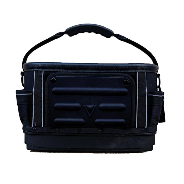 The Rogue 30 Open Tote is a medium-sized professional tool tote with an open-top design for easy access. It is made from durable, water-resistant materials, reinforced at the base, and has multiple pockets to organize tools efficiently.